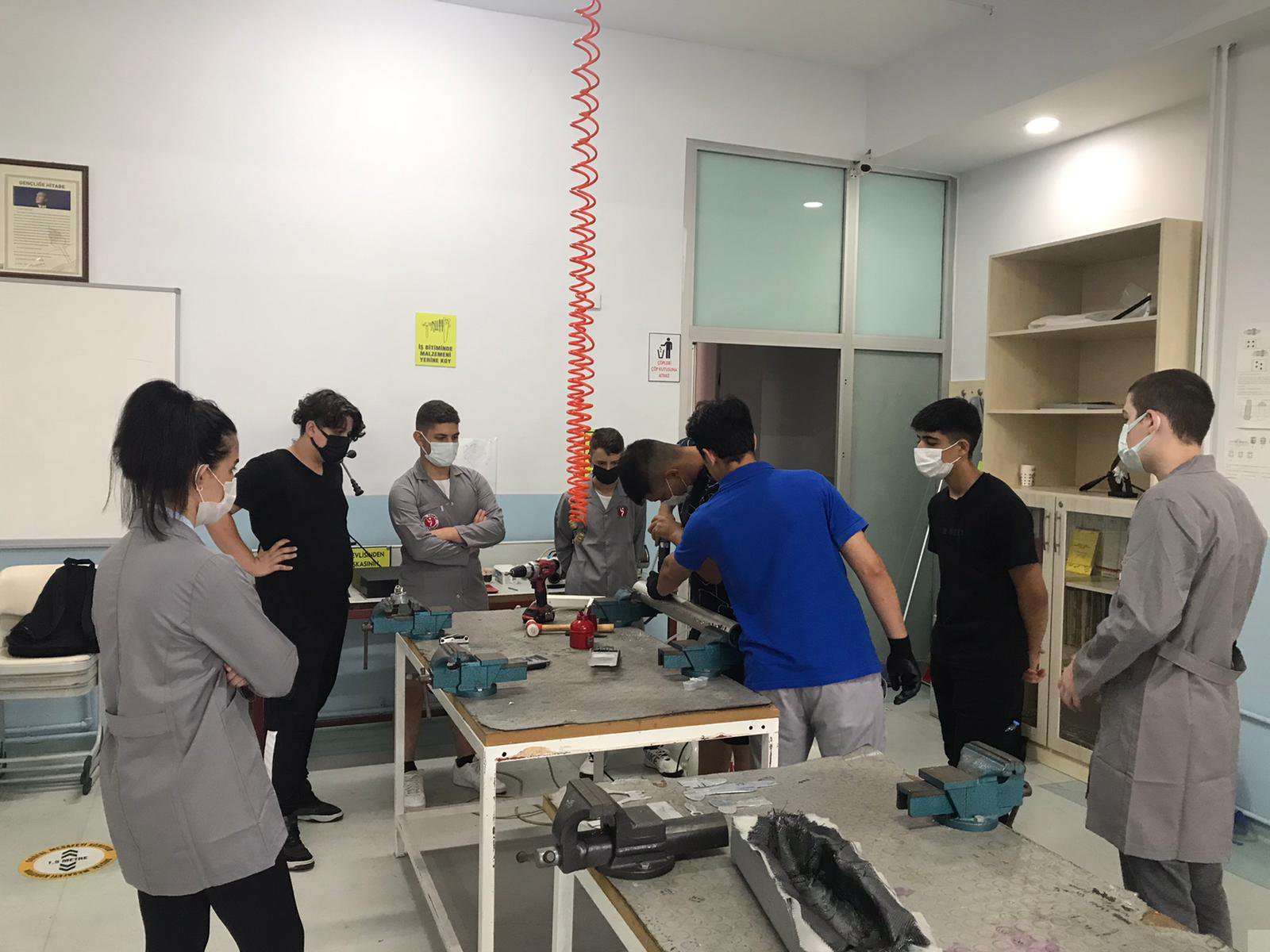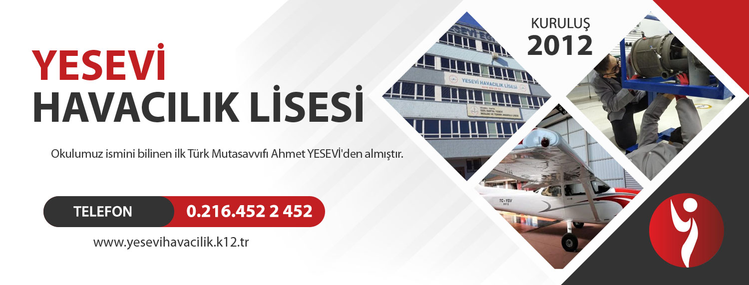 Okulumuz 2012 yılında açılmıştır Okulumuz 2012 yılında Anadolu Sağlık Meslek lisesi olarak faaliyete başlamış ve 2014-2015 Eğitim Öğretim yılında Uçak Gövde Motor bakımı teknisyenliği bölümü açılmıştır. Şu anda okulumuzda uçak gövde motor bakımı teknisyenliği bölümü bulunmaktadır. Okulumuz ismini bilinen ilk Türk Mutasavvıfı Ahmet YESEVİ'den almıştır. Havacılık sektörü her yıl gelişmekte ve bu doğrultuda kalifiye personel ihtiyacı da artmaktadır. Okulumuzdaki yetkin öğretmen kadrosu ve gelişen teknolojiye uyumlu eğitim setleri ile sektörün tüm gereksinimlerini karşılayacak bilgi ve donanımda teknisyenler yetiştirmekteyiz. Aynı zamanda kampus alanımızdaki hangarlarımızda Cessna 172 Skyhawk uçağı ile bakım uygulamaları, uçak sistemleri ve simülator uçuş eğitimi vererek öğrencilerimize teorik eğitimin yanında birebir piston ve gaz türbinli motorlar üzerinde çalışma imkanı sunmaktayız. Bünyemizdeki uçak gövde/motor, hidrolik/pnömatik, teknik resim, bilgisayar ve elektrik atölyelerimizdeki güncel yayın ve ekipmanla öğrencilerin el yeteneklerini ve tecrübelerini geliştirmelerine olanak sağlıyoruz. Ayrıca velilerimizle koordineli hareket ederek öğrencilerimizin gelişimi hakkında düzenli olarak karşılıklı bilgi paylaşımında bulunmaktayız. Eğitim setlerimiz: Piston Motor Sökme Takma Eğitim Seti APU Yardımcı Güç Ünitesi Çalışan Motor Seti Kabinli Piston Motor Eğitim Seti Turboprop Motor Sökme Takma Eğitim Seti Hidrolik Eğitim Seti Pnömatik Eğitim Seti İniş Takımı/Flap/Fren Sistemi Oksijen Sistemi Yakıt Sistemi Yangın İkaz ve Söndürme Sistemi Borulama Eğitim Seti Contalama Eğitim Seti Atık Su Sistemi Buji Temizleme Eğitim Seti Oil Cooler Eğitim Seti Tam Donanımlı Elektrik Atölyesi Tam Donanımlı Atölye Malzeme Odası Motor ve Pervane Stokajlama Bölmeleri Pervane Perçin Atma Eğitim Seti Öğrencilerin havacılığa olan ilgisini artırmak, mesleklerini sevdirmek ve analatik düşünme/hızlı karar verme yetilerini pekiştirmek amacıyla okulumuzda çeşitli branşlarda faaliyetler düzenlemekteyiz. Bunlar: Simulatör Eğitimi Gerçek uçak içine kurulu simülatörle uçuş deneyimi Projeksiyonda RC (uzaktan kumandalı) model uçak similasyonu Model Uçak RC Balsa F3P Model Foam Lastik motorlu Maket Uçak Plastik Cardboard Metal Drone Sportif/Hobi Her yıl düzenlenen havacılık fuarlarına tüm öğrencilerimizin katılımını sağlayarak meslek hayatlarına yönelik gözlemler yapmalarını amaçlıyoruz. Çeşitli spor, gezi ve sosyal sorumluluk faaliyetleri ile öğrencilerimizin sosyalleşmesini sağlıyoruz. Okul içi ve dışı platformlarda yapılan (Hobby Time) maket uçak yarışmalarında ve masa tenisi, salon futbolu, basketbol, paintball ve taekwondo yarışmalarında çeşitli ödüller kazanılmıştır. Sonuç olarak öğrenci-öğretmen-veli dayanışması ile geleceğin başarılı havacılarını yetiştirme yolunda mesai mevhumu gözetmeksizin şevkle çalışmaktayız. Öğrencilerimize bu yolda her türlü olanağı ve desteği sağlamaktayız.